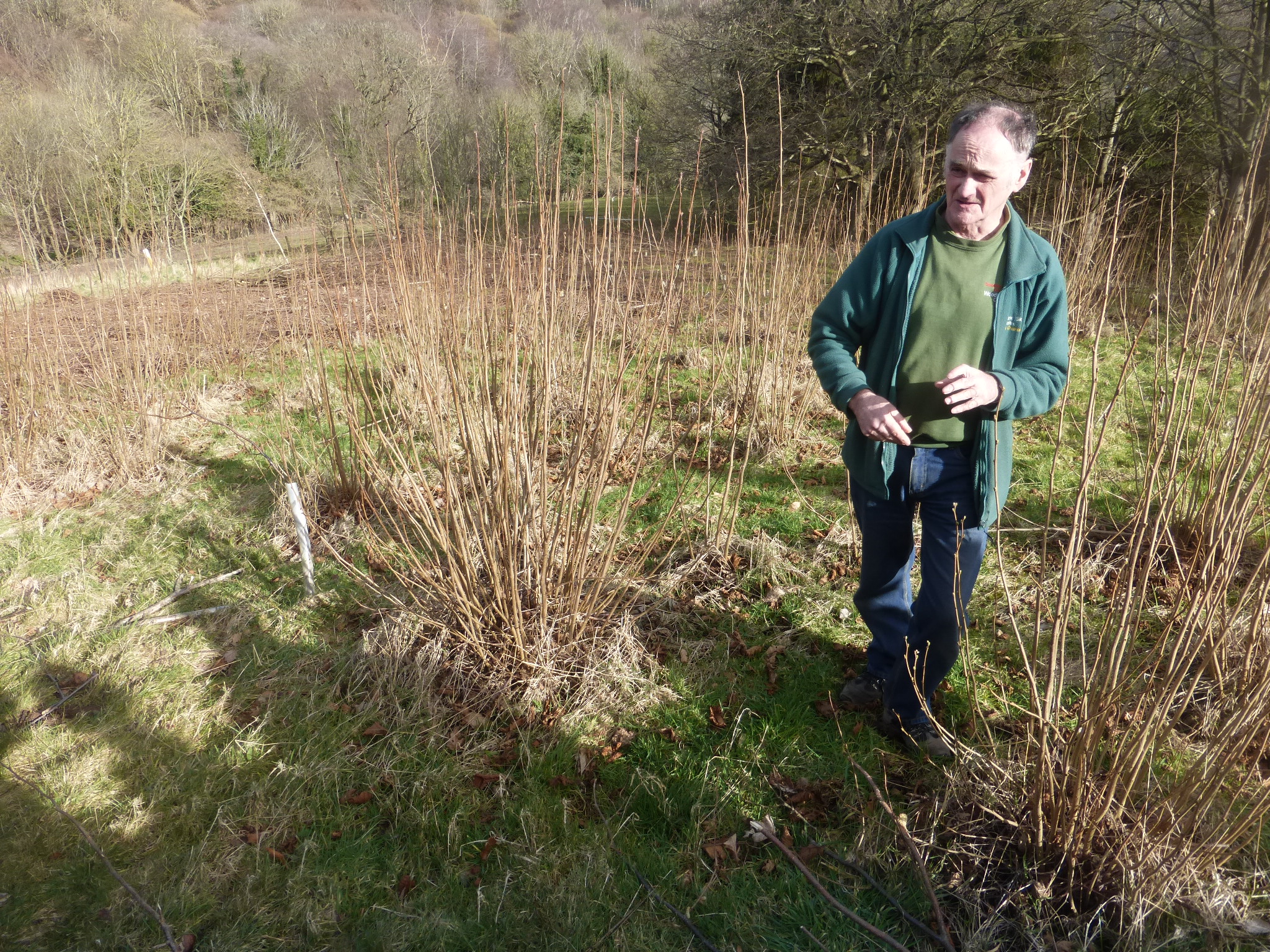 One year old hazel stems, coppiced every three years, with Rod Waterfield.
